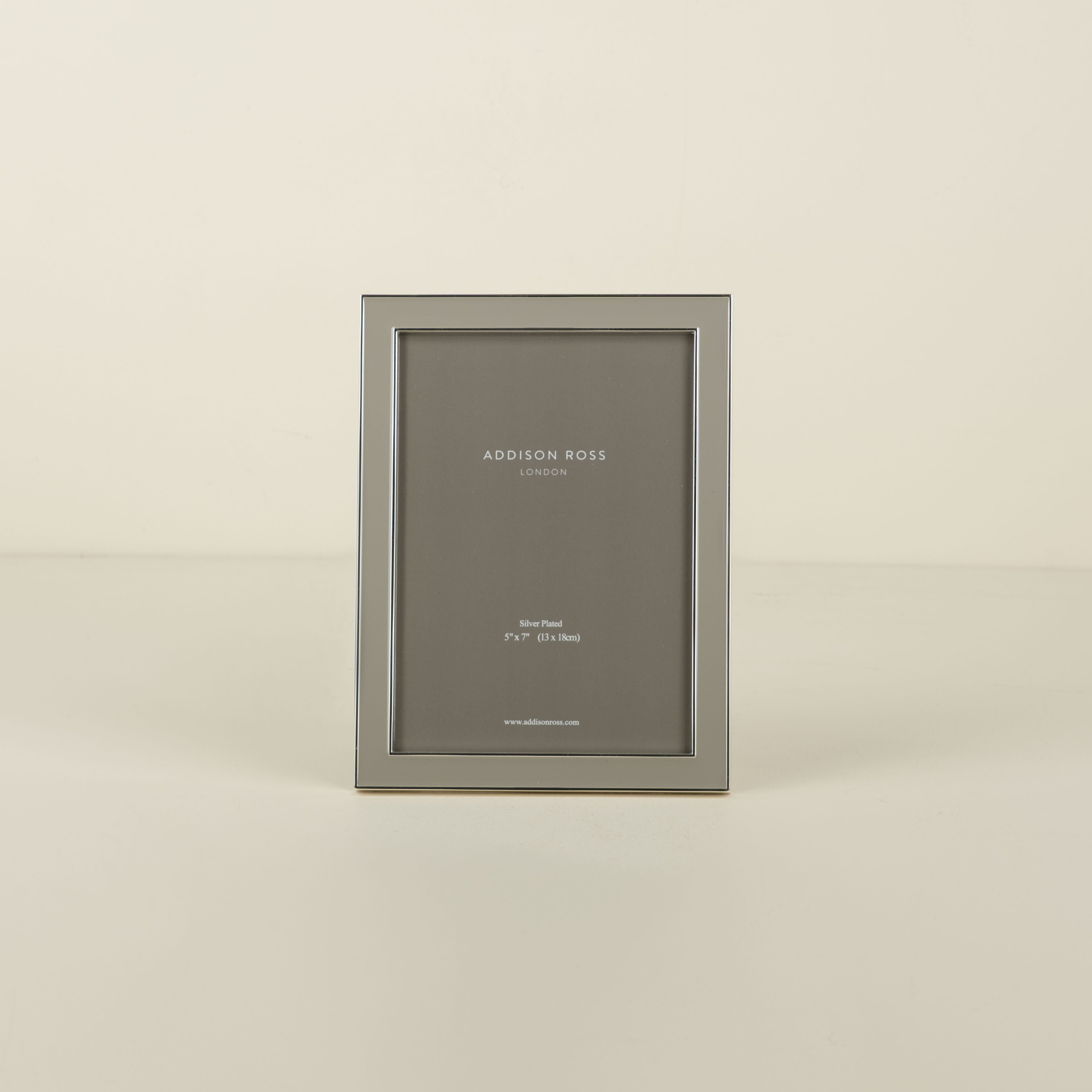 - 1/2" taupe gray enamel frame finished with a fine silver trim