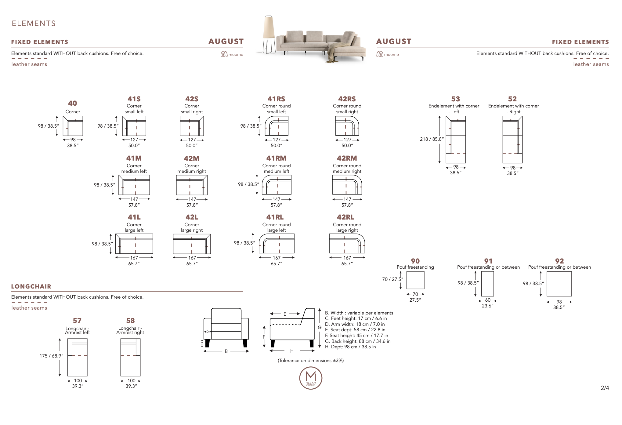 Seating: Start with one of our pre-configured styles or build your own using August’s modular pieces, including corner, armless, chaise, and ottoman modules.