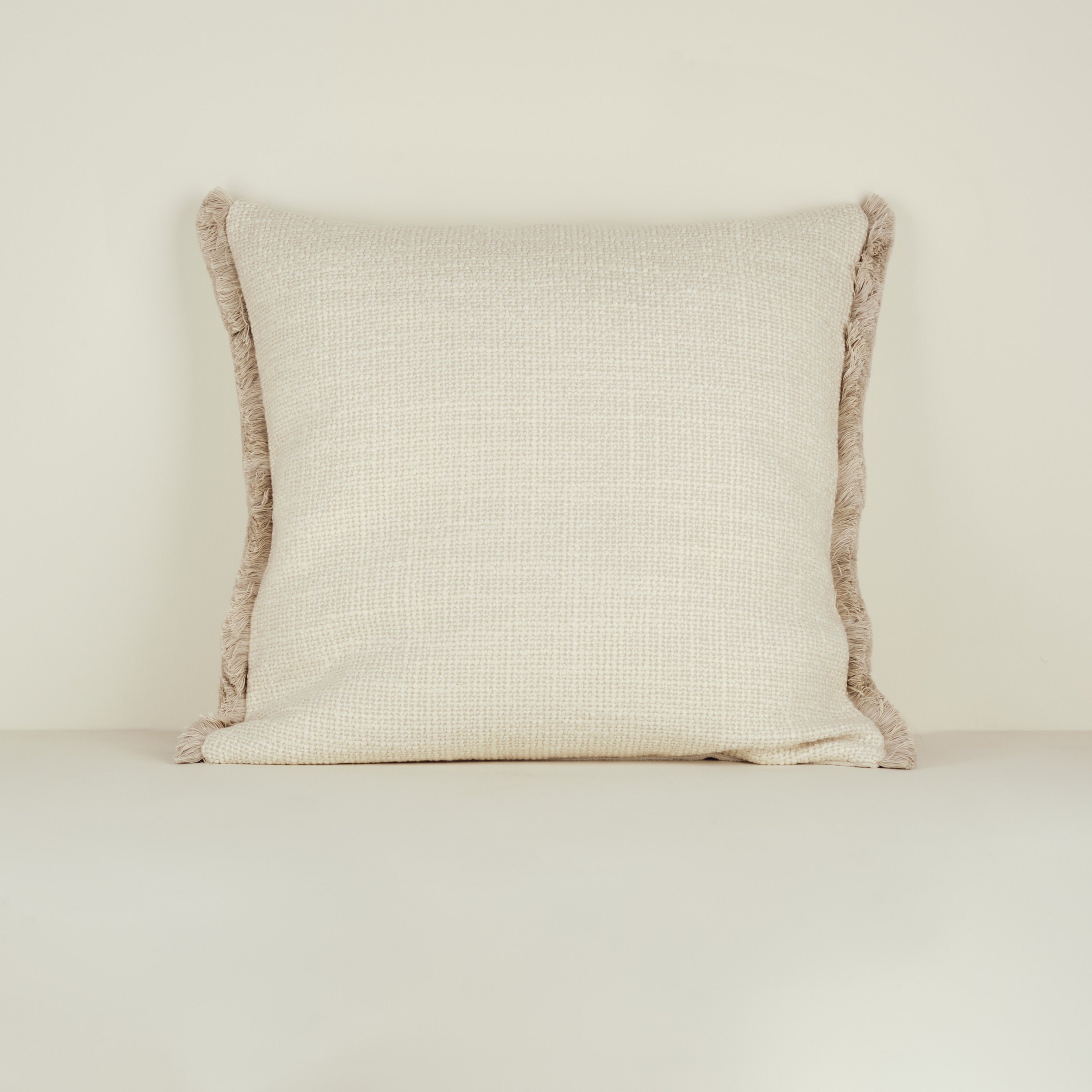 Softly sculptural and quietly luxurious, this cushion brings a refined layer of texture to any space. Its boucle weave—a sumptuous mix of linen, viscose, wool, and cotton—creates a beautifully tactile, elevated finish. Brushed fringe detailing adds just the right touch of relaxed sophistication.