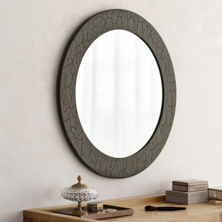 Relying on ancestral techniques, the Sphere wall mirror's frame is shaped by Indonesian artisans. Natural mineral powders and colour pigments blend together to form earthy tones and unique textures. It's both bold and elegant at the same time.