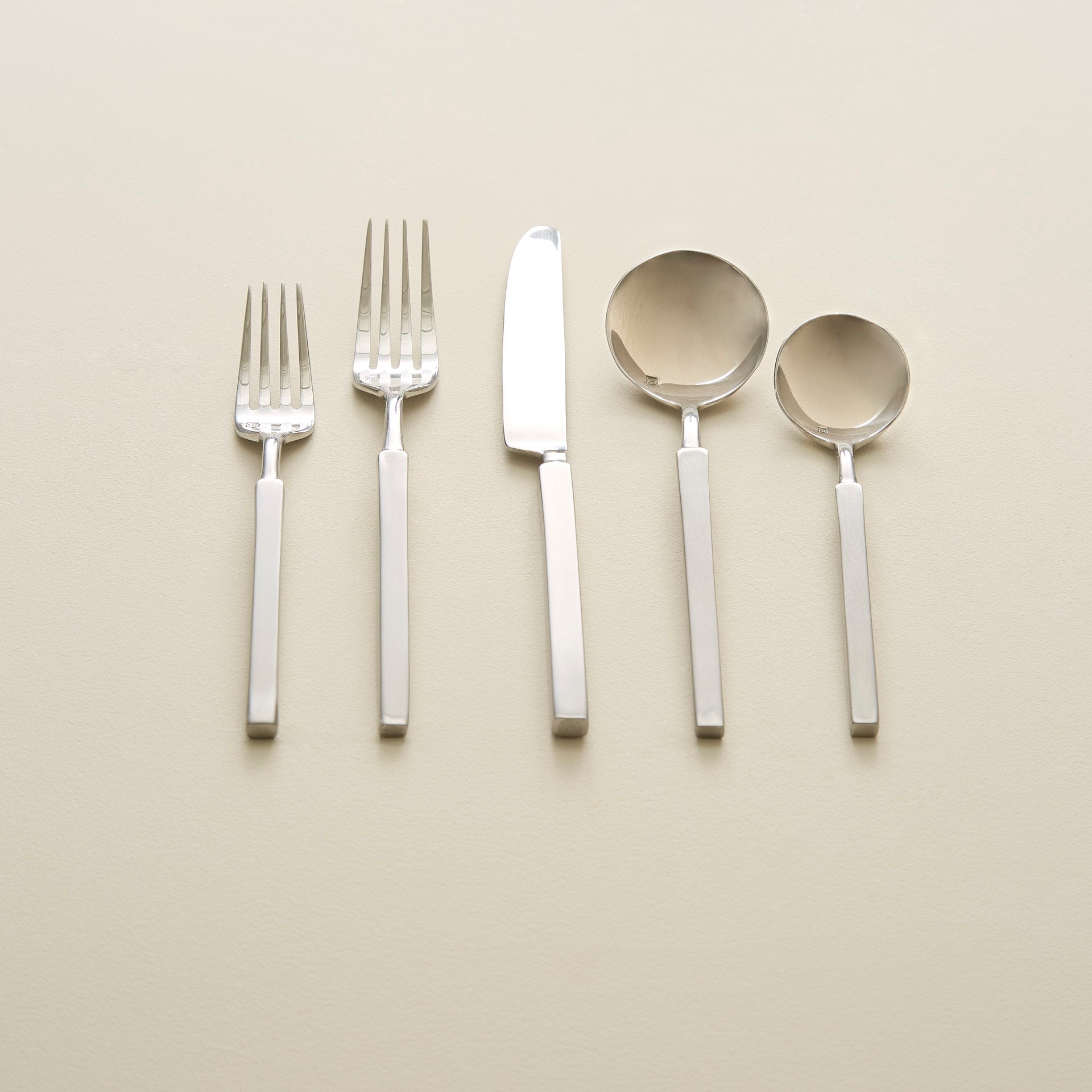 Minimalist with an edge, Jaxson Brushed pushes the boundaries of modernism, with its squared handles and brushed handles. Crafted with premium 18/10 stainless steel, the highest quality stainless steel available for flatware that delivers heft and balance that feels just right in the hand.
